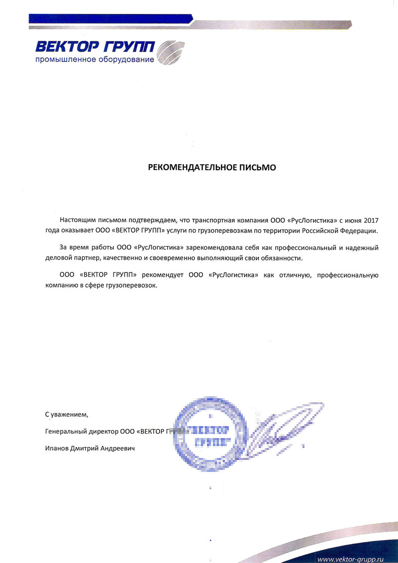 Генеральный директор ООО «ВЕКТОР ГРУПП» Иванов Д.А.